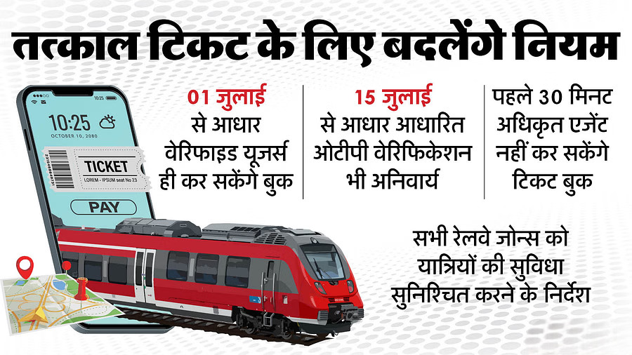 Tatkal train tickets can now only be booked through IRCTC accounts linked with Aadhaar. An OTP-based verification system, sent to the Aadhaar-linked mobile number, has been implemented. Additionally, railway agents are barred from booking Tatkal tickets for the first 30 minutes after bookings open.